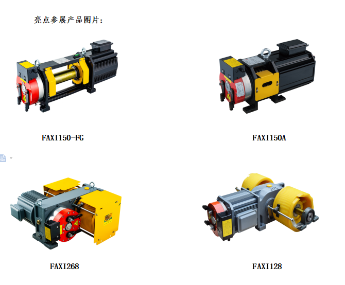 通过本公司技术人员的精心研究,结合低噪环保的设计理念,为家用电梯和无机房电梯提供三大系列驱动解决方案:钢丝绳曳引式、钢带曳引式、强制驱动式。 ”FAXI”凭借精美的外形、紧凑的结构和稳定的品质把控,以及及时周到的服务,受到国内多家知名电梯公司的青睐,并销往全球80多个国家和地区。