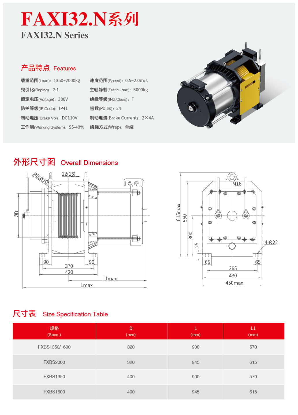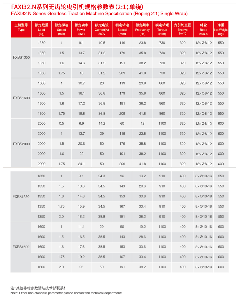 采用双支撑结构,轴承受力合理,适用于大载重客梯和货梯。