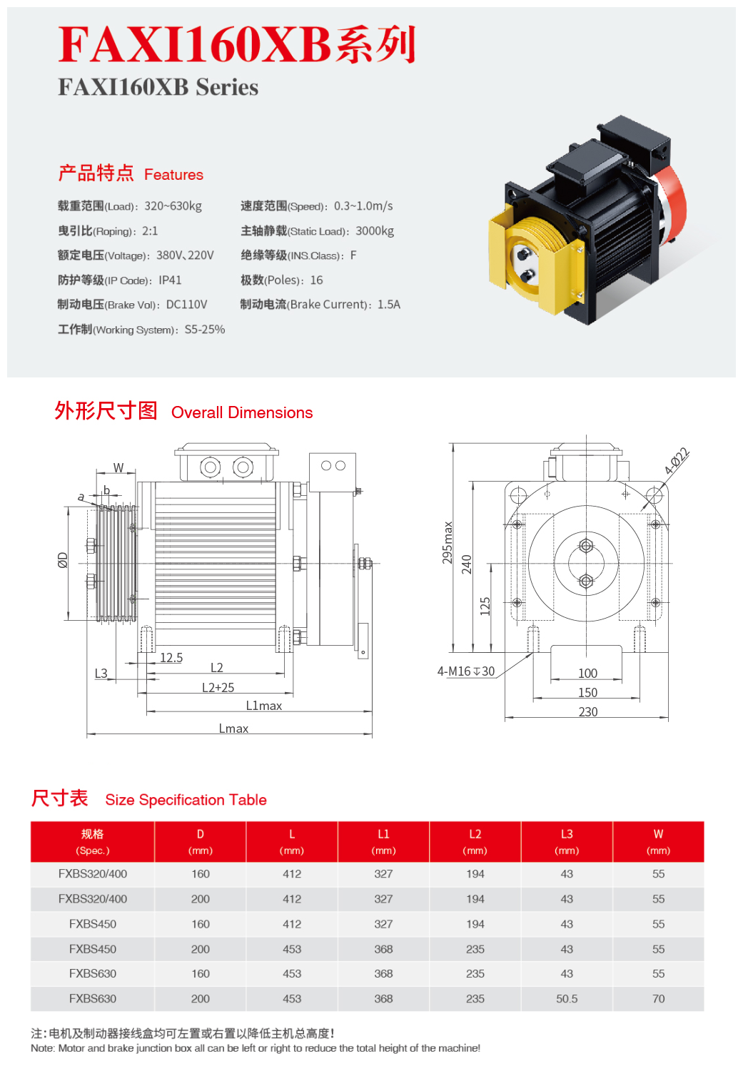 曳引轮直径160mm或200mm,结构紧凑,外形美观,噪音低,适用于无机房别墅梯或小载重住宅梯.