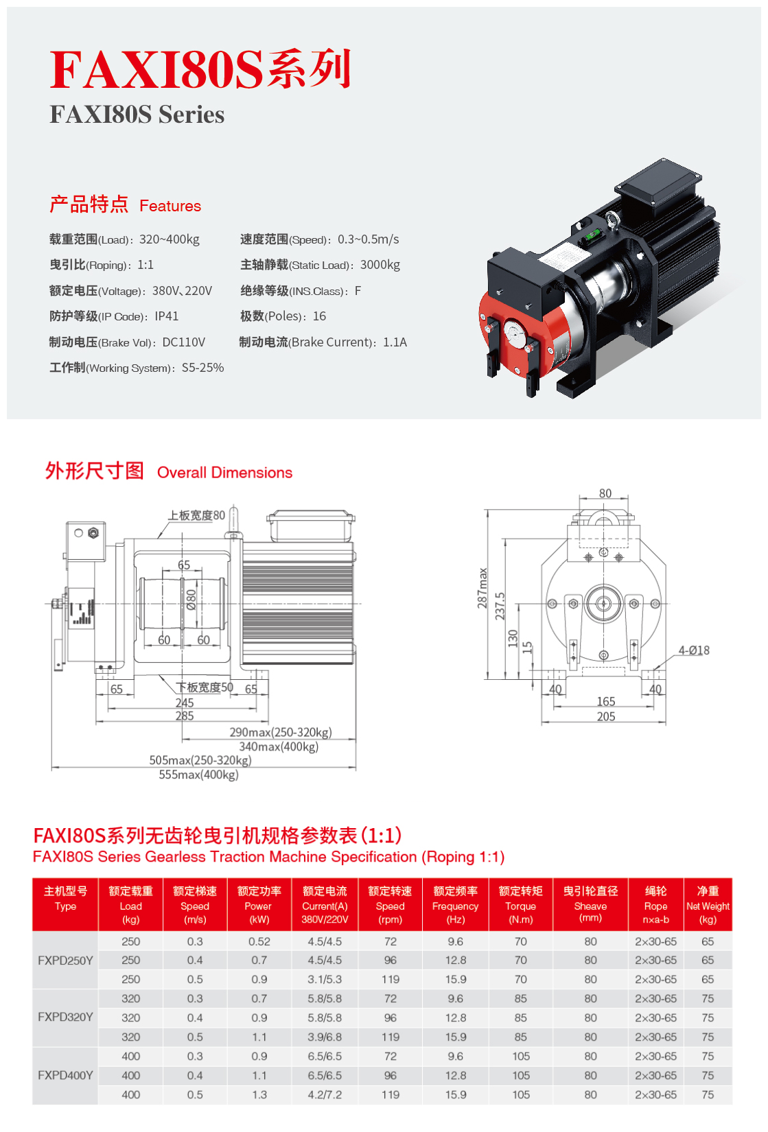 FAXI80S,主机尺寸小,钢带曳引1:1布置,适用于家用平台梯。