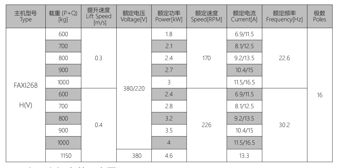 6、 可提供 380V,1050Kg≤P+Q≤1200kg 非标产品.