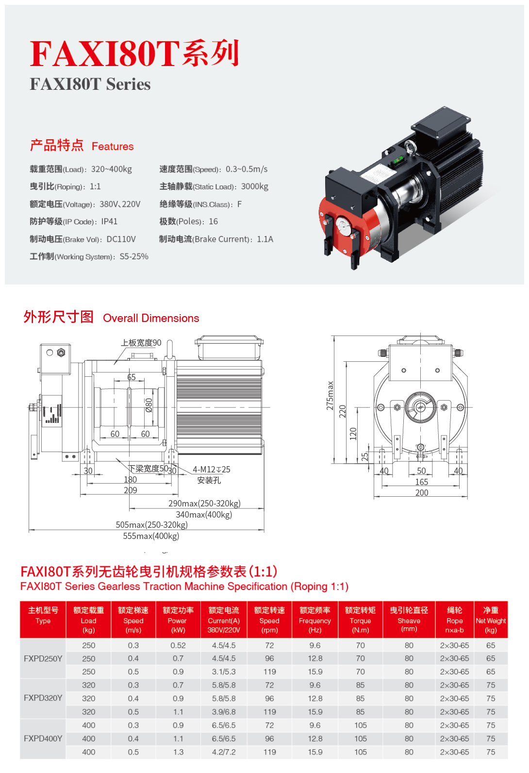 FAXI80T系列: 主机底脚采用螺纹孔,安装采用反翘螺丝,这样便于固定和主机中心高的降低,该主机一般用于1:1方案。