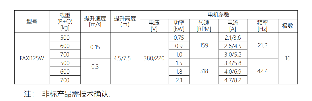 FAXI125W系列强驱永磁同步主机规格参数表:
