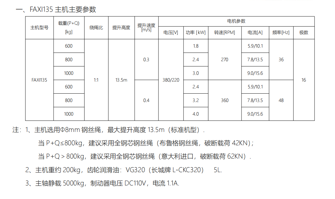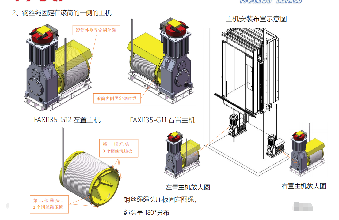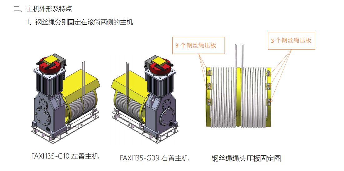 4)FAXI135-G09/10主机配有松绳器保护开关,防止钢丝绳松动(断裂)产生的意外风险.